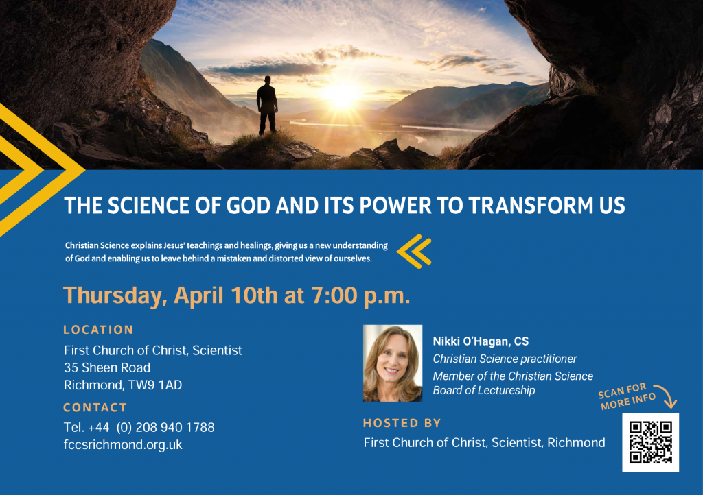 For a link to more upcoming Christian Science lectures in the UK, and worldwide both in person and online, please search here.